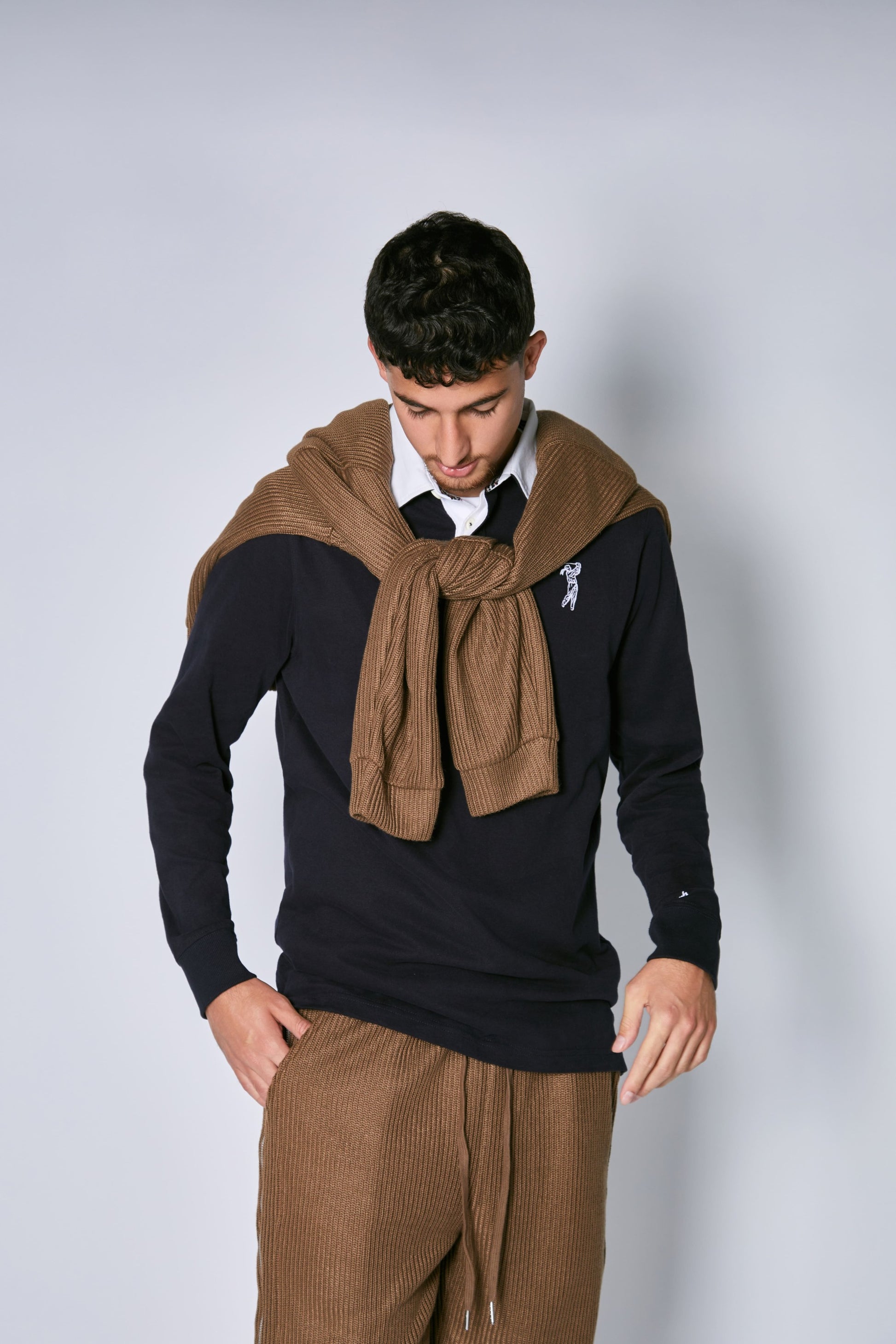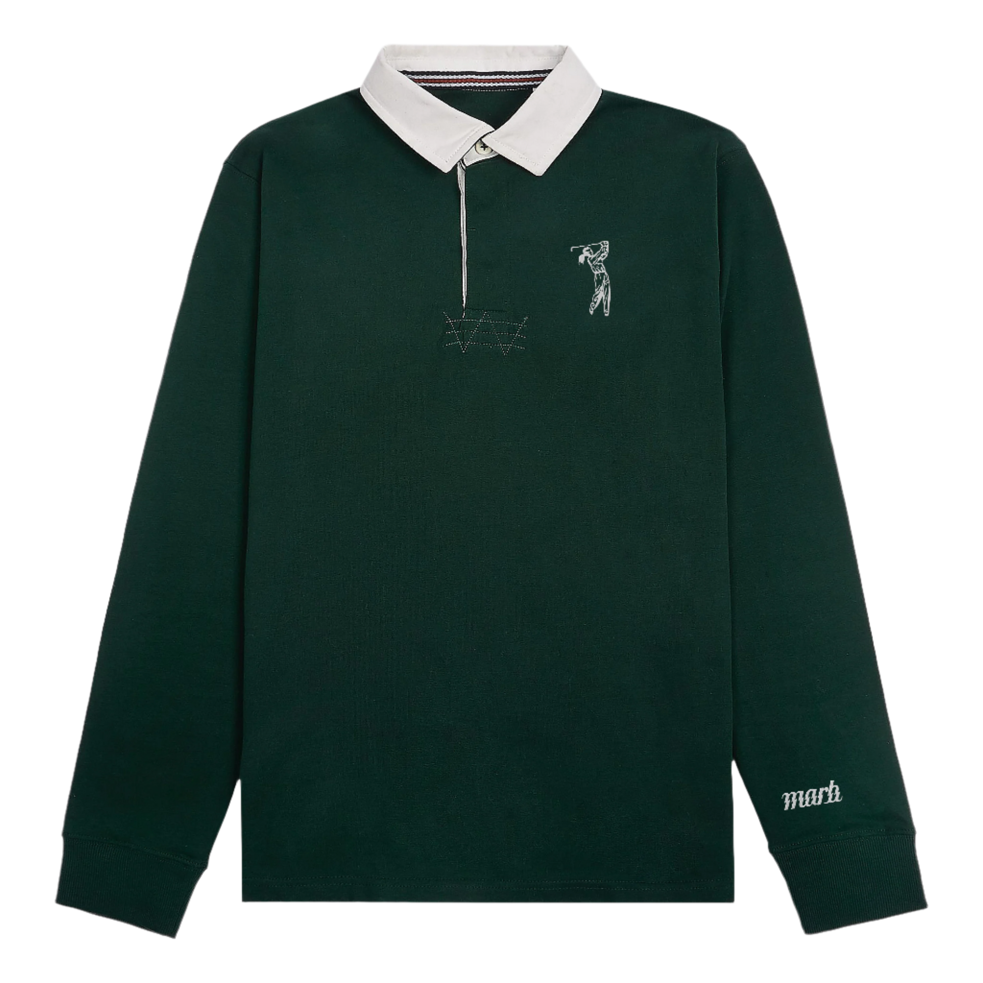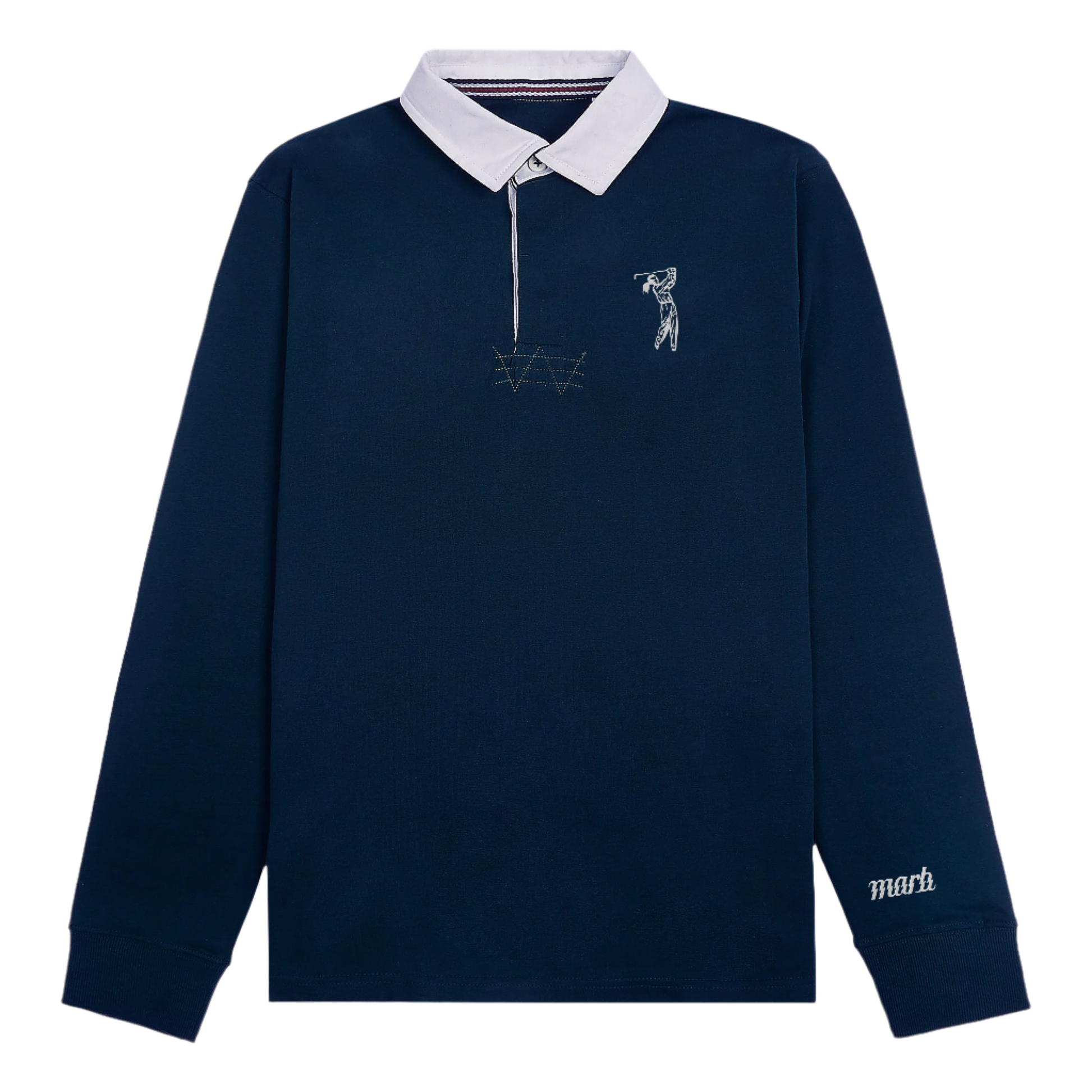The male rugby is a refined take on the classic rugby shirt, crafted from soft, heavyweight fabric for lasting comfort. It features a crisp white collar and an embroidered golf woman motif at the chest—blending heritage sportswear with a nod to timeless leisure.