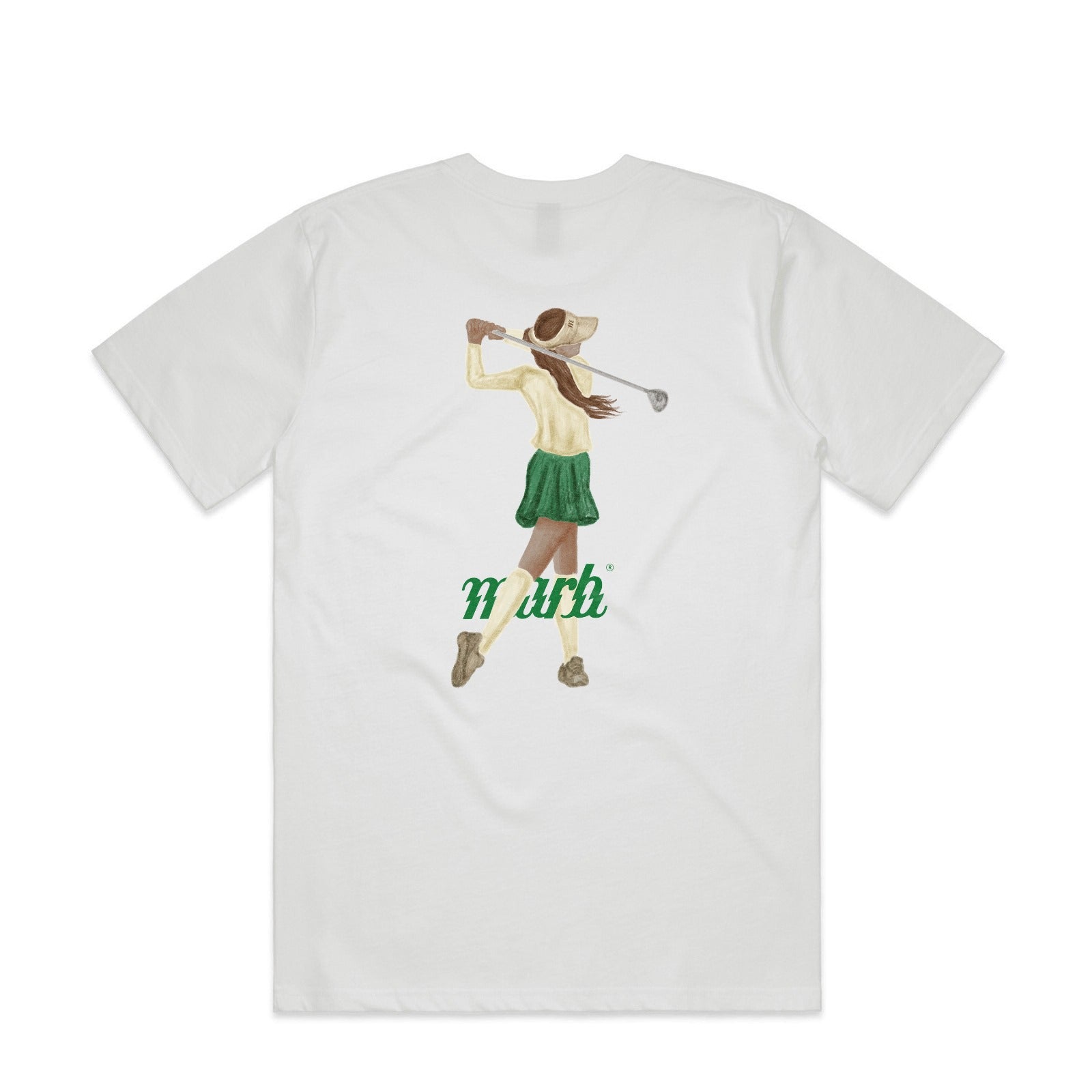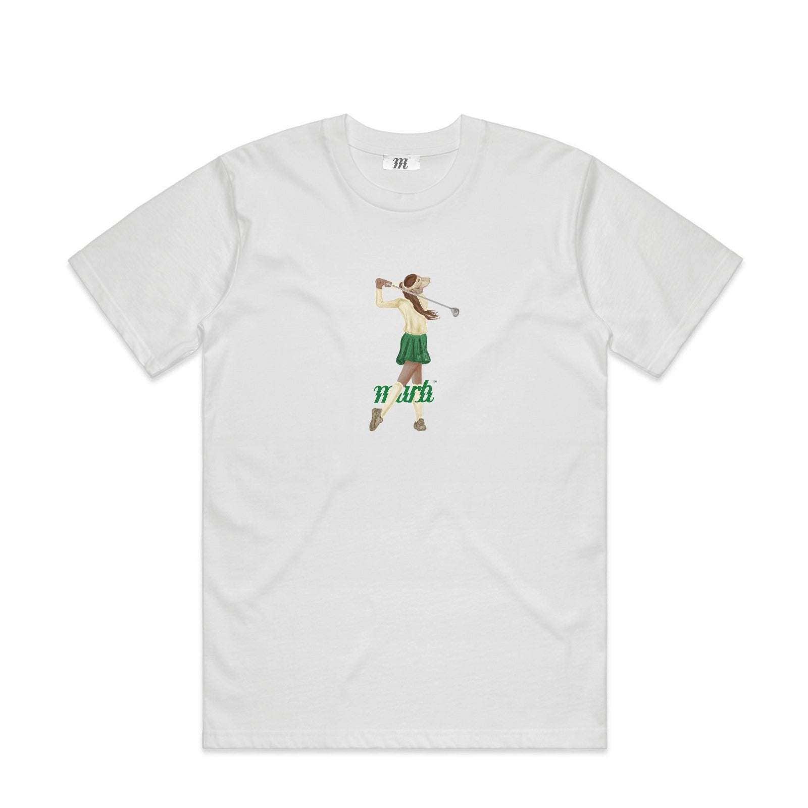 Printed with a female golfer mid-swing, this tee captures the moment after the decision the precision, the distance, the grace.