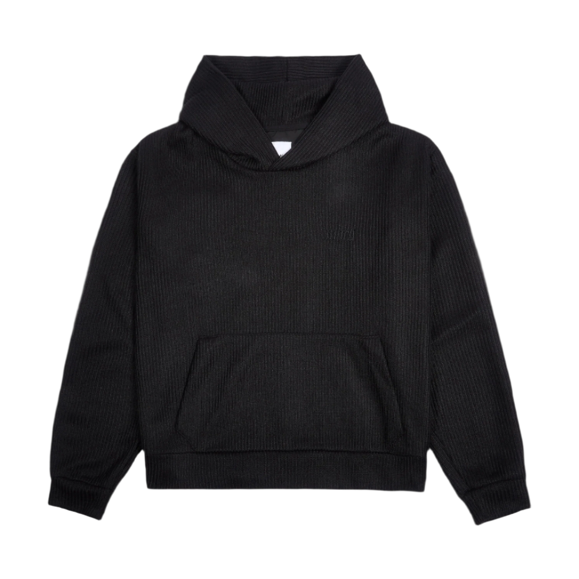A black (phantom) breathable knitted hoodie designed for both comfort and character. This piece features a subtle tonal design on the front and a striking back wing western detail across the shoulders—merging everyday wearability with refined statement styling.